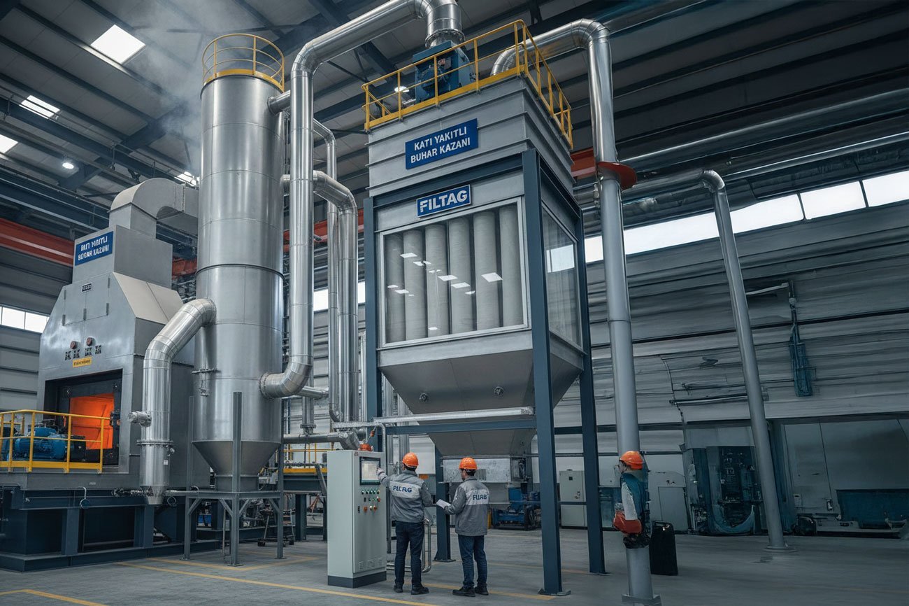 Katı yakıtlı buhar kazanları; kömür, biyokütle, talaş, pirina ve benzeri yakıtlarla çalışan, endüstriyel tesislerde yaygın olarak kullanılan enerji üretim sistemleridir. Bu kazanlarda yanma sonucu oluşan baca gazları yüksek oranda kül, uçucu toz ve partikül madde içerir. Bu emisyonların kontrol altına alınması, hem çevre mevzuatlarına uyum hem de sistem verimliliği açısından kritik öneme sahiptir.